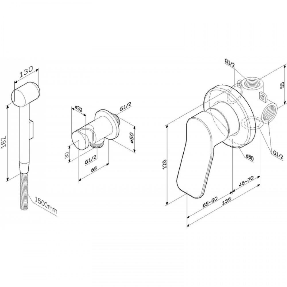 - Оснащение: душевой шланг / держатель для душа / шланговое подключение
