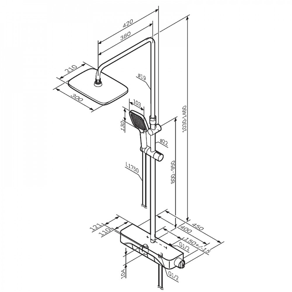 - Размер верхнего душа (ШхД): 300х210 мм.