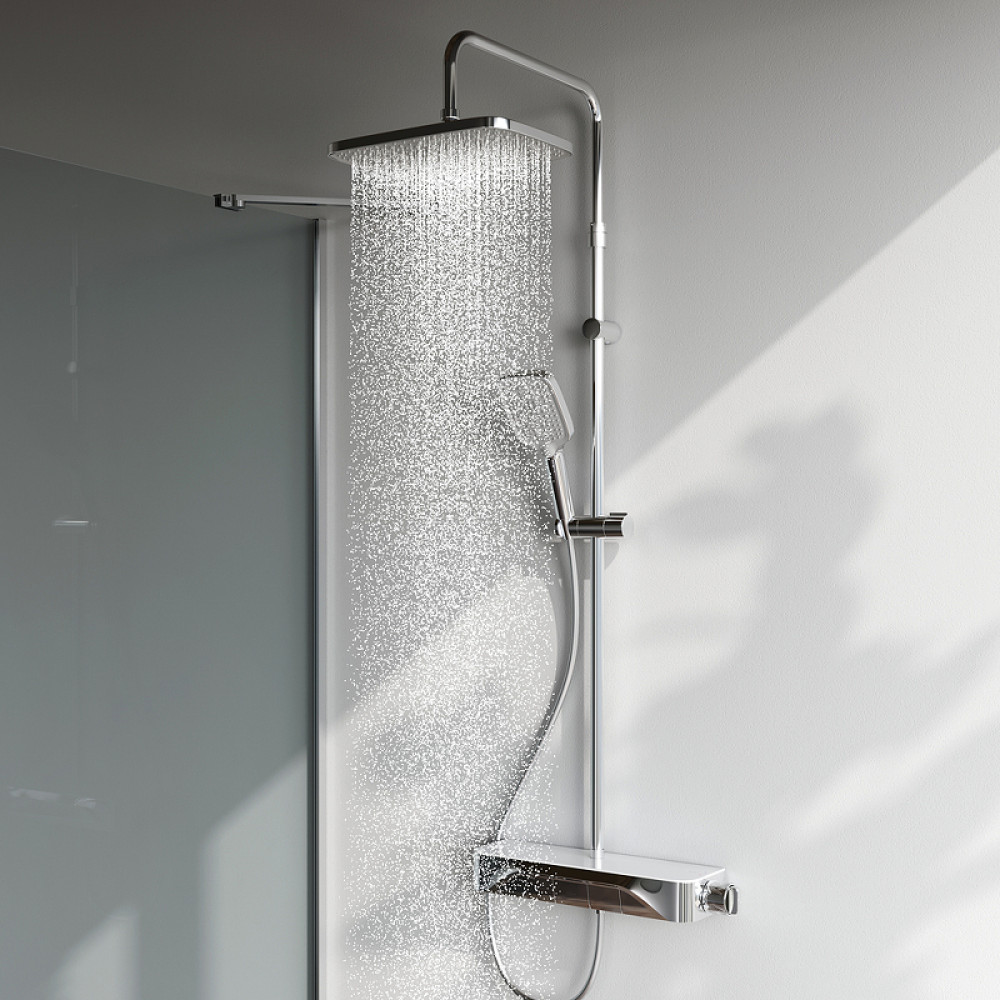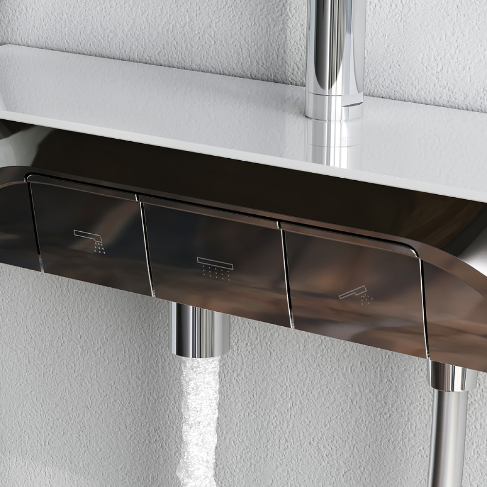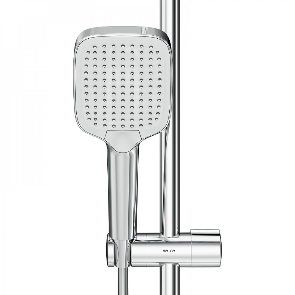 Встречайте коллекцию Func – самую функциональную коллекцию в линейке AM.PM. Наши инженеры продумали и учли каждую деталь, чтобы сделать процесс использования продуктов максимально простым и комфортным для всех членов семьи. Еще больше места для хранения: смеситель выполнен в виде вместительной полочки. Внушительный размер полки (40 см.) позволяет хранить все любимые средства под рукой, а эстетичный силуэт станет настоящим украшением современной ванной комнаты. Интуитивно понятное управление: всего одна удобная ручка для настройки температуры и потока воды. Ручка дополнена инновационным антискользящим покрытием, которое позволяет комфортно управлять душевой системой даже с мыльными руками. Переключение потоков воды осуществляется нажатием клавиши. Продуманные детали для вашего удобства: телескопическая штанга регулируется по высоте, обеспечивая комфорт для людей любого роста. Трендовая прямоугольная форма, увеличенный размер леек и 3 режима ручного душа подарят вам ощущения настоящего домашнего SPA.