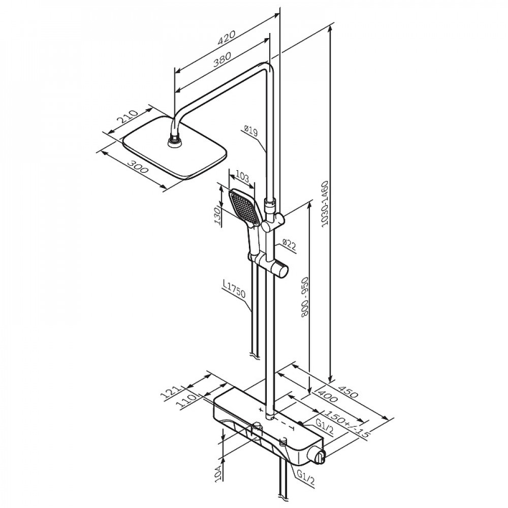 - Размер верхнего душа (ШхД): 300х210 мм.