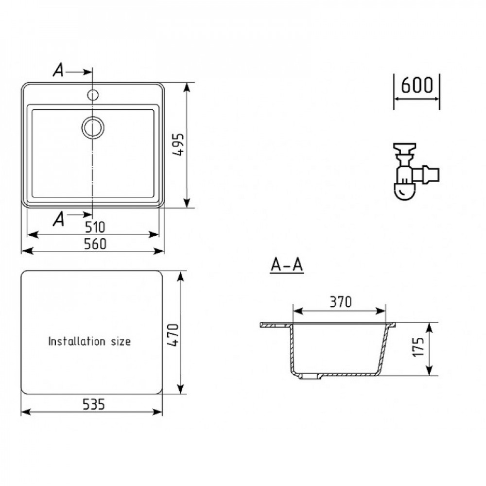 | Ширина, см56 | МатериалЛитьевой мрамор | Цвет мойкиЧёрный |