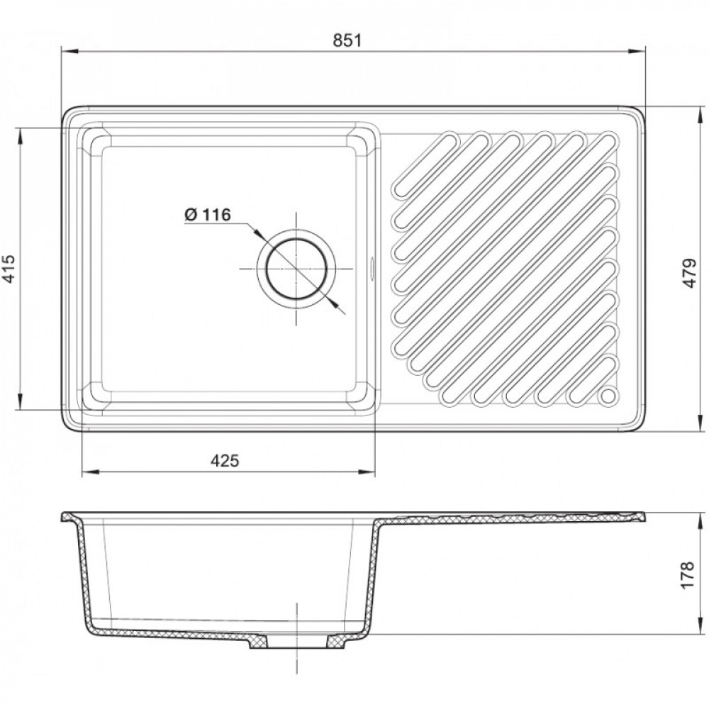 | Глубина, см50 | Ширина, см85 | МатериалКварц |