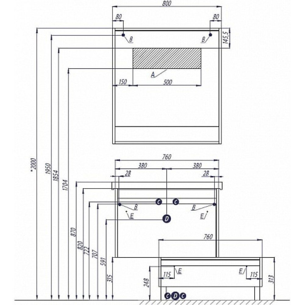 Технические характеристики Акватон Комод Капри 80 бетон пайн