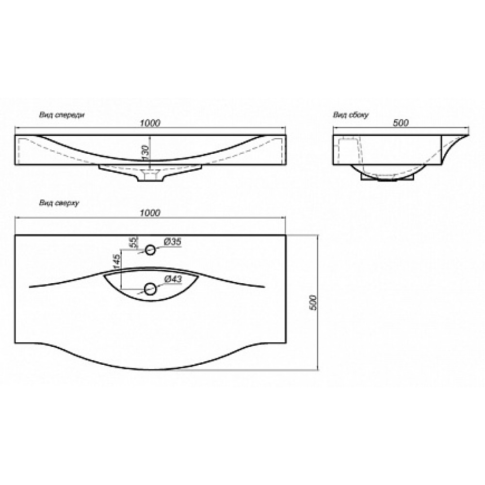 Размеры ШxГxВ: 1000x40x600мм
