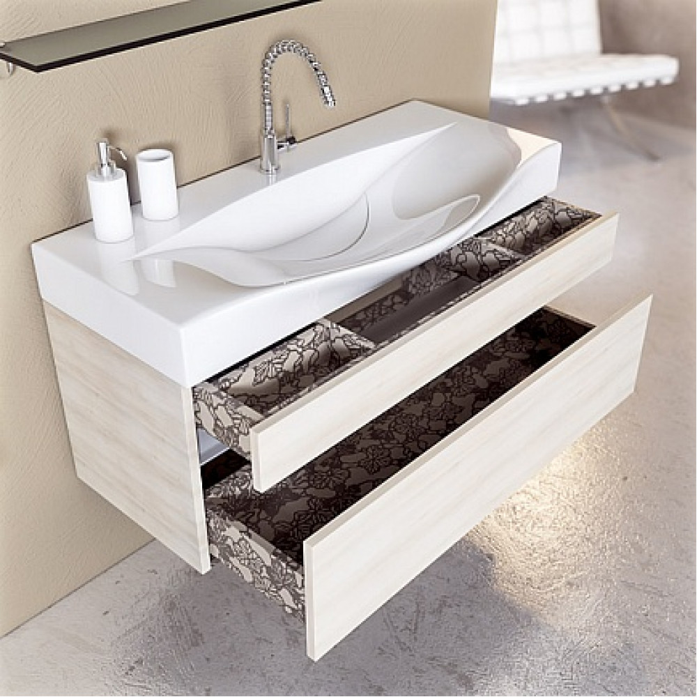 Описание: Тумба под умывальник подвесная, два выдвижных ящика на направляющих Blum, раковина Bergamo 1000см, Ber.10.04.D.
