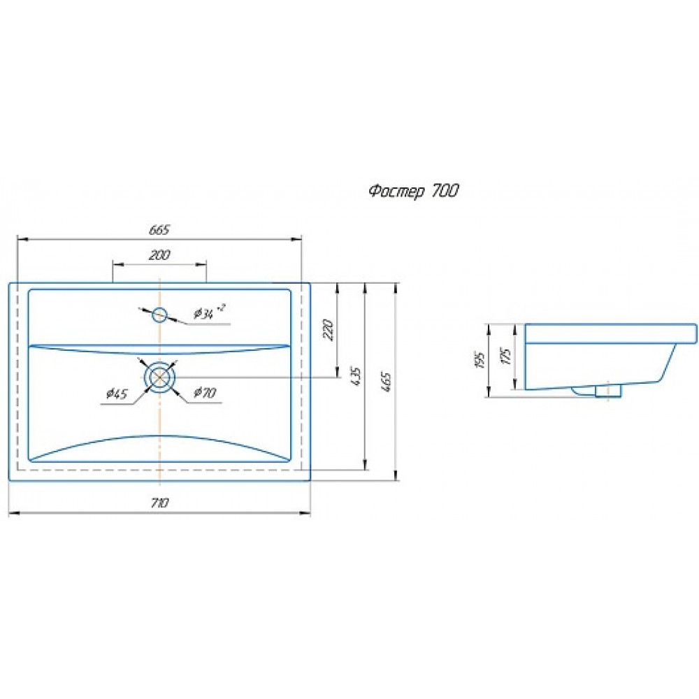 - Раковина Kirovit Фостер 70 со слив-переливом.