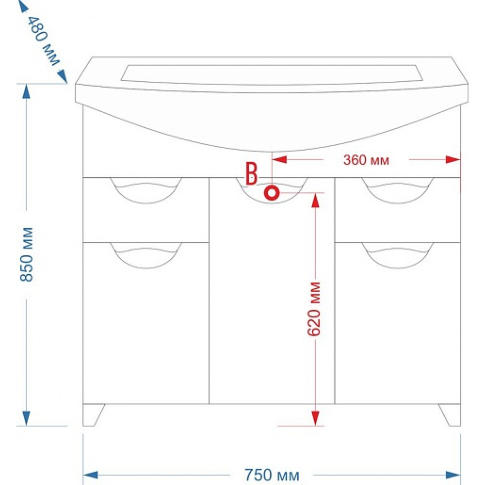 Тумба с раковиной Misty Орхидея 75 - арт. П-Орх01075-0112Я / 028230.