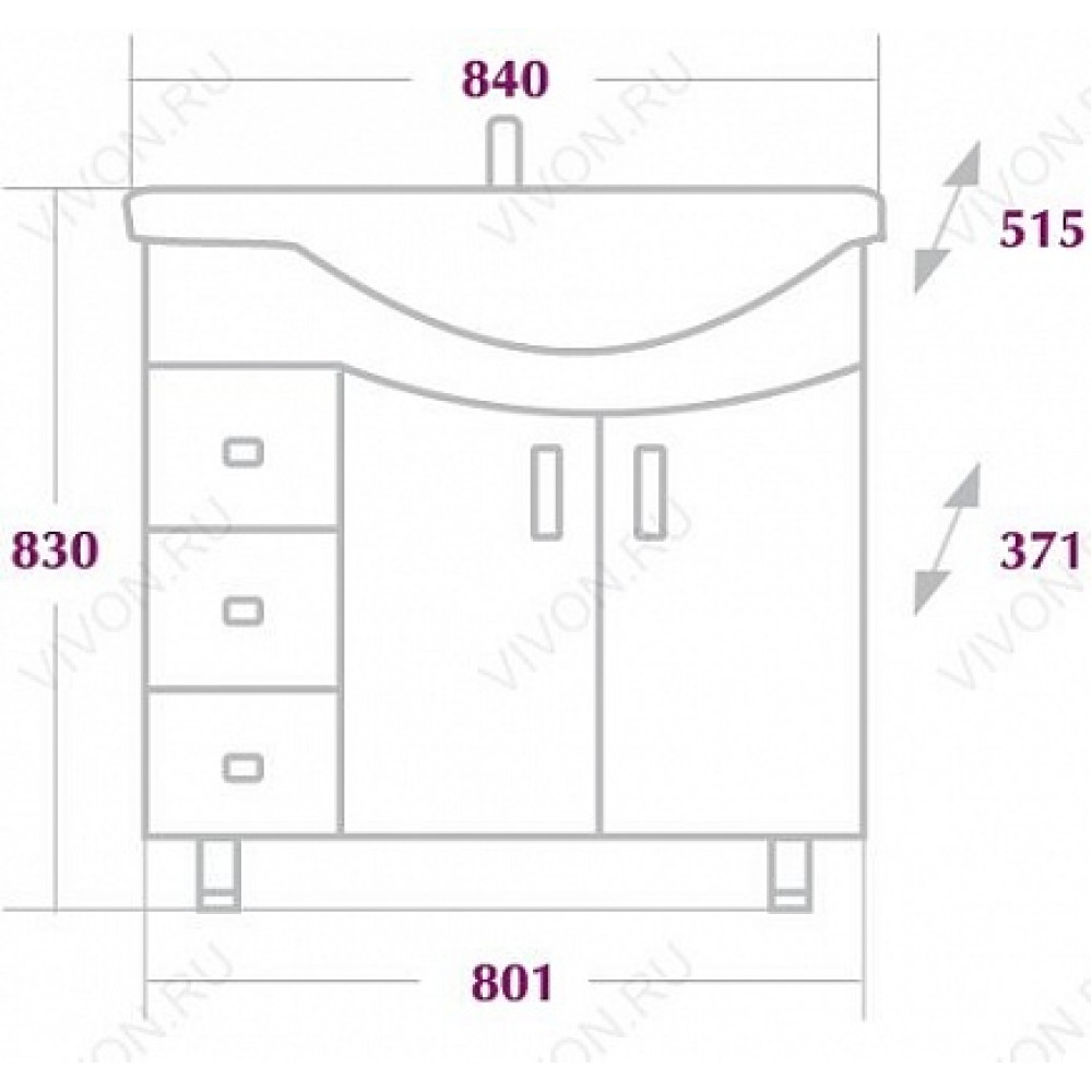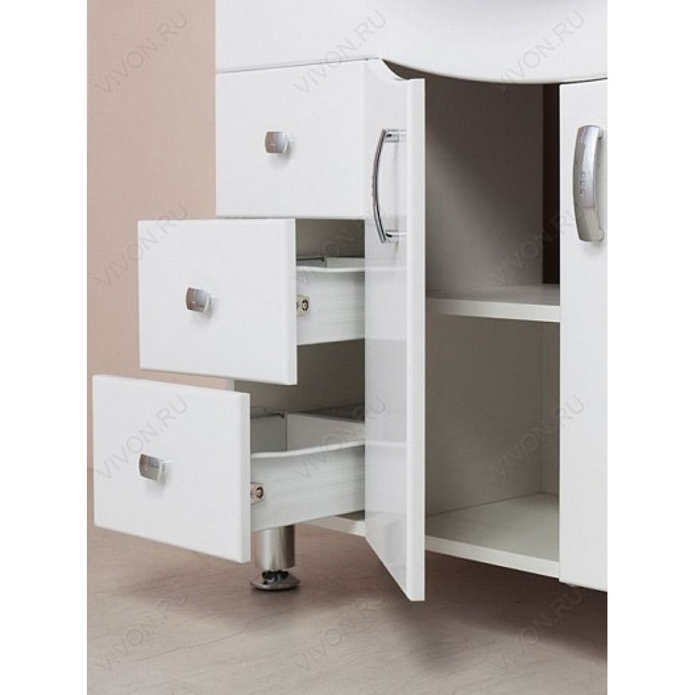 - тумба под раковину: 3 выдвижных ящика, распашные дверцы, полка внутренняя, ручки - металл (хром), ножки передние (регулируемые) - металл (хром), ножки задние (регулируемые) - пластик