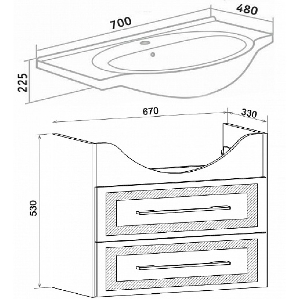 Подвесная тумба с раковиной Runo Дублин 70 - арт. 00-00001066 / УТ000002235 (4620750029340 / 4690311008978).