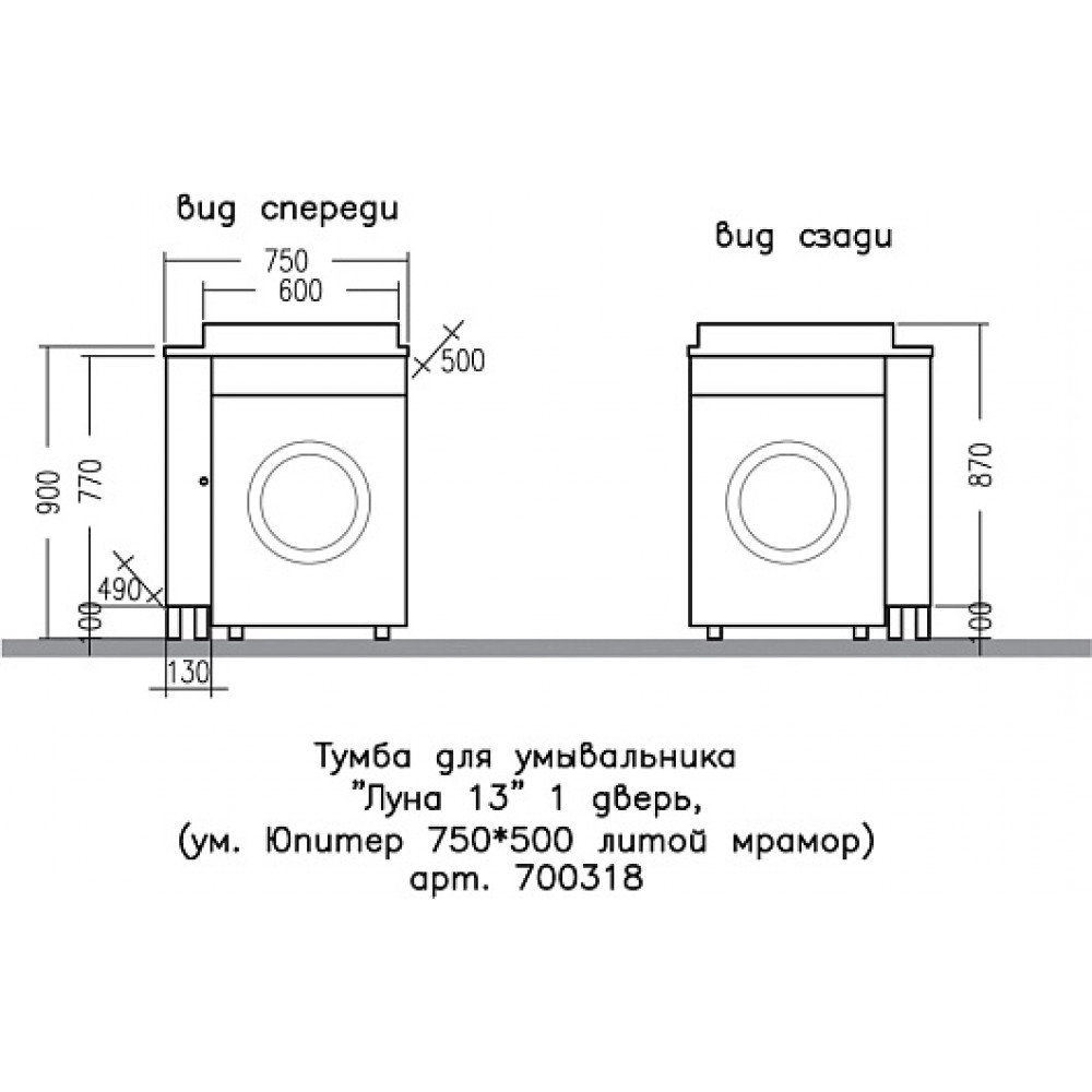 Напольная тумба под раковину над стиральной машиной Санта Луна 13 - арт. 700318.