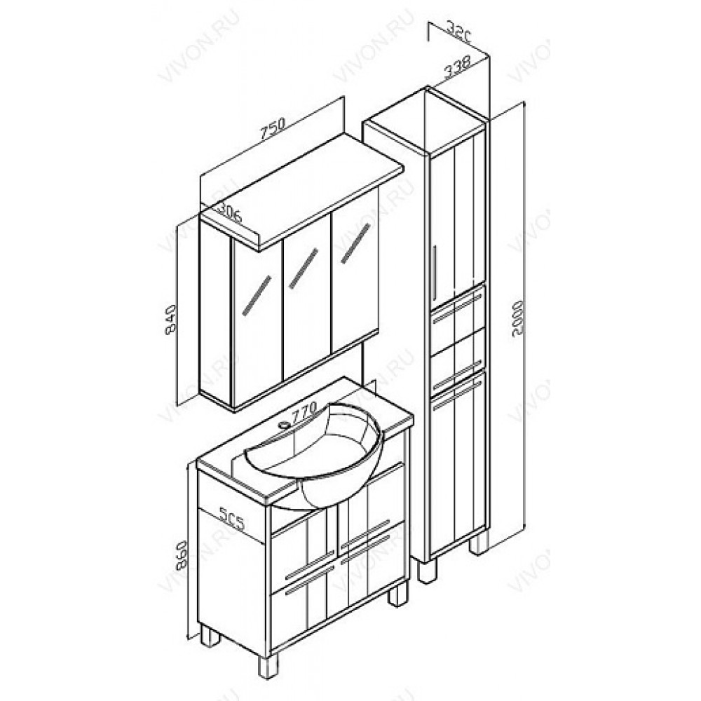 Размеры ШхГхВ: 750х306х840 мм
