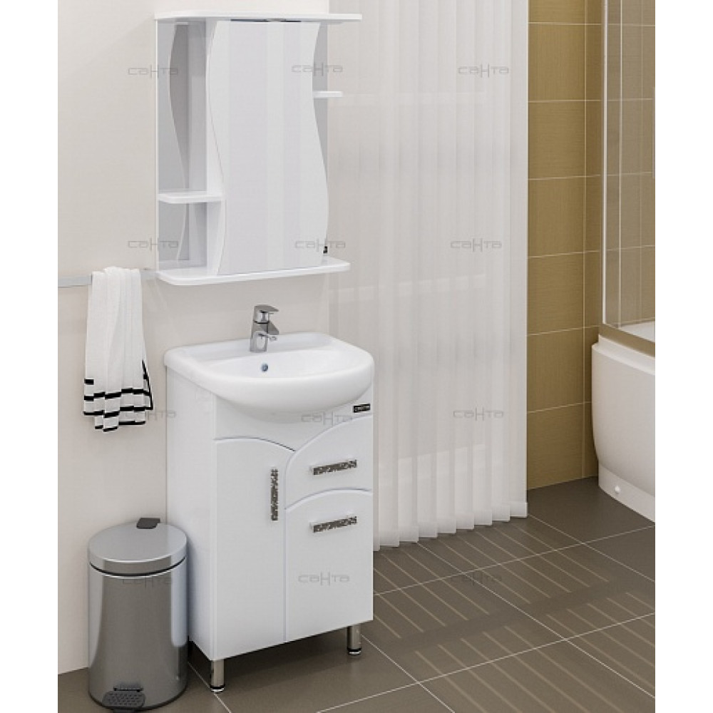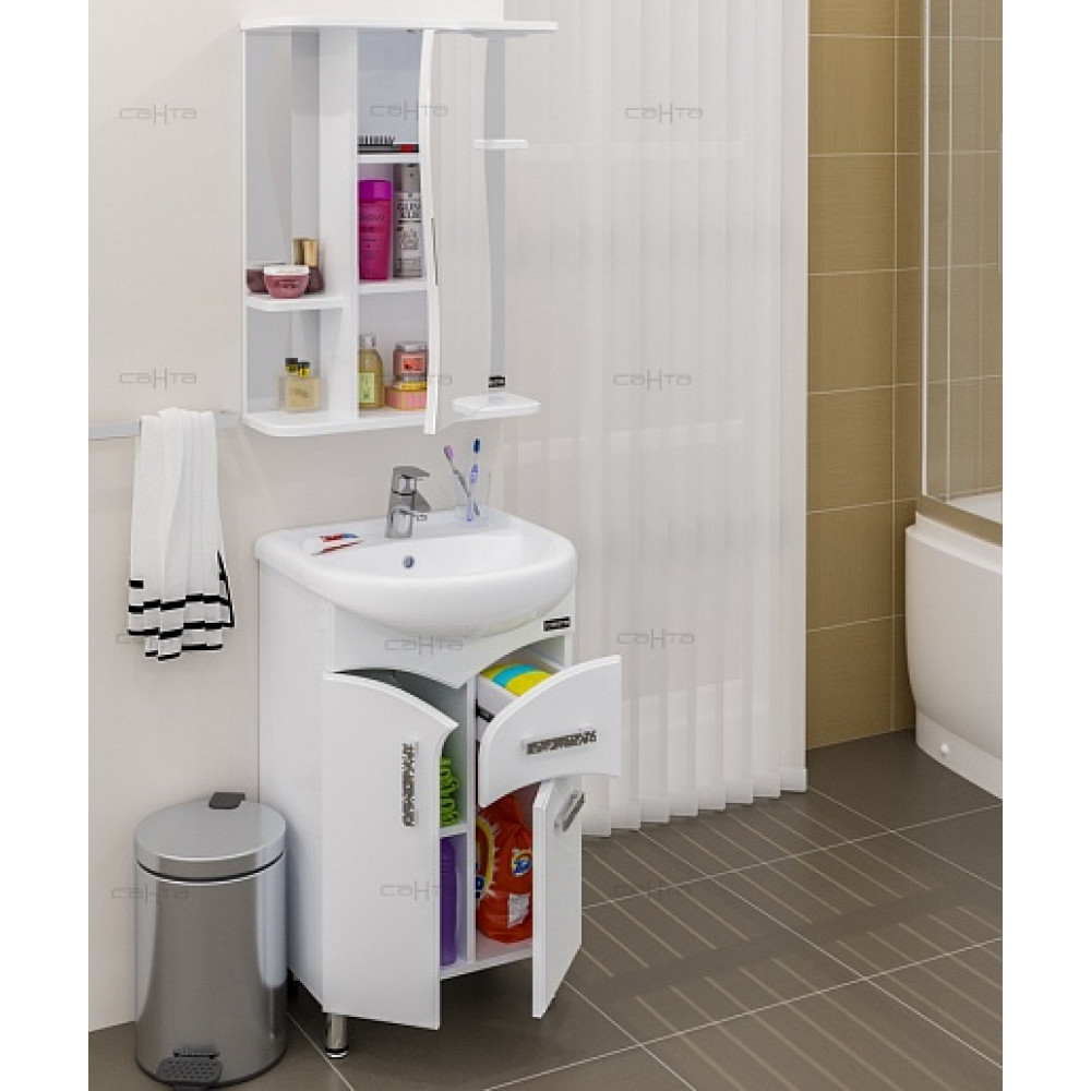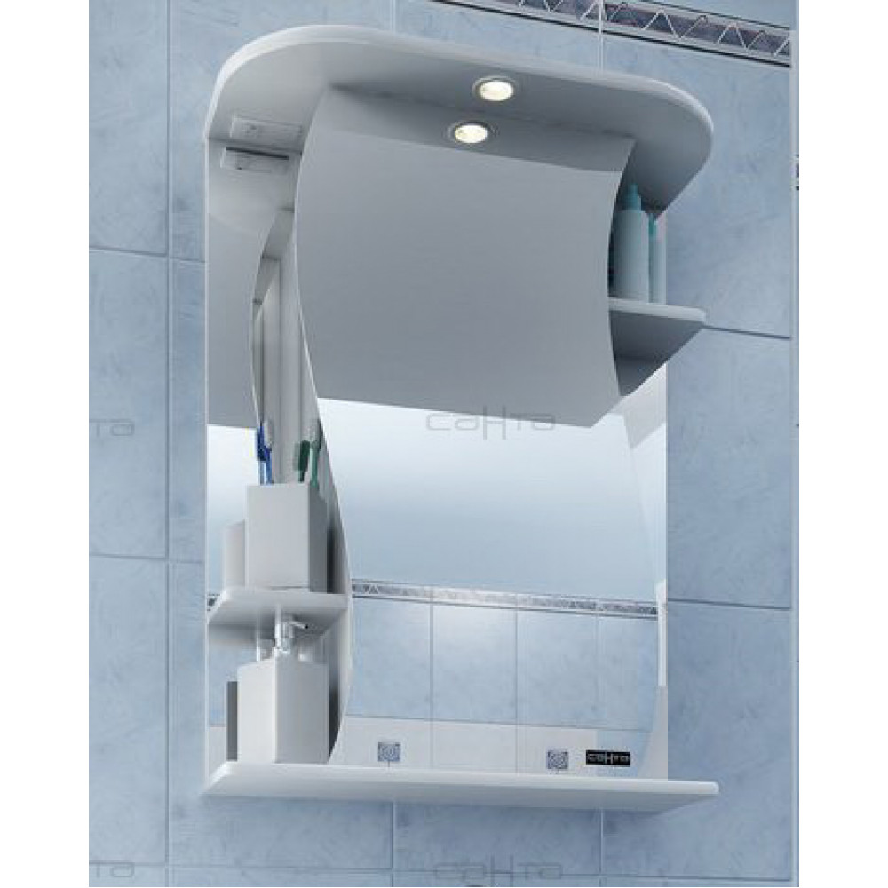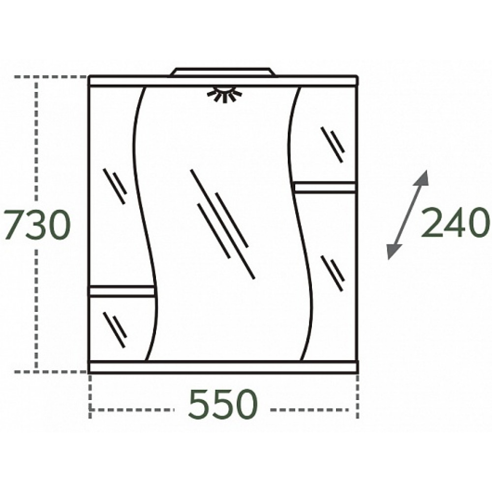 Описание: влагостойкая зеркальная распашная дверца, полочки, подсветка, выключатель, розетка.