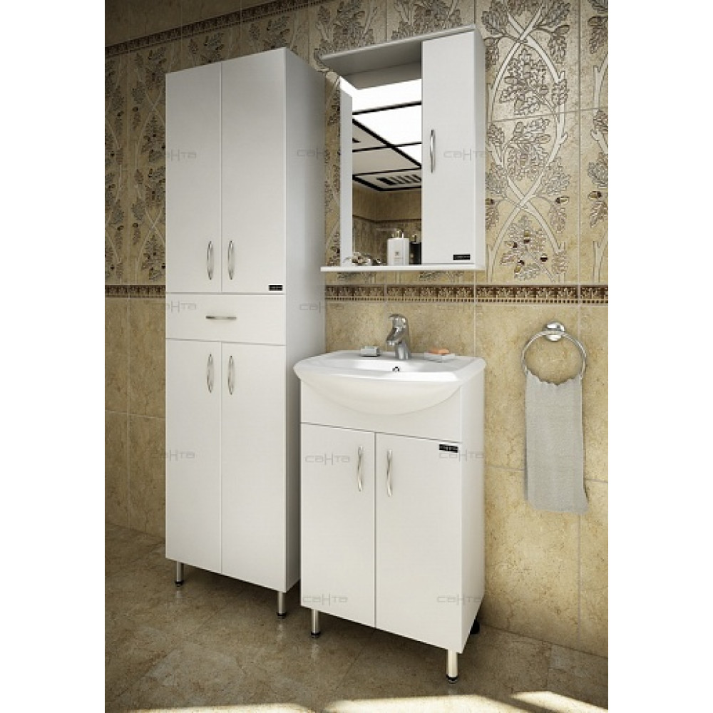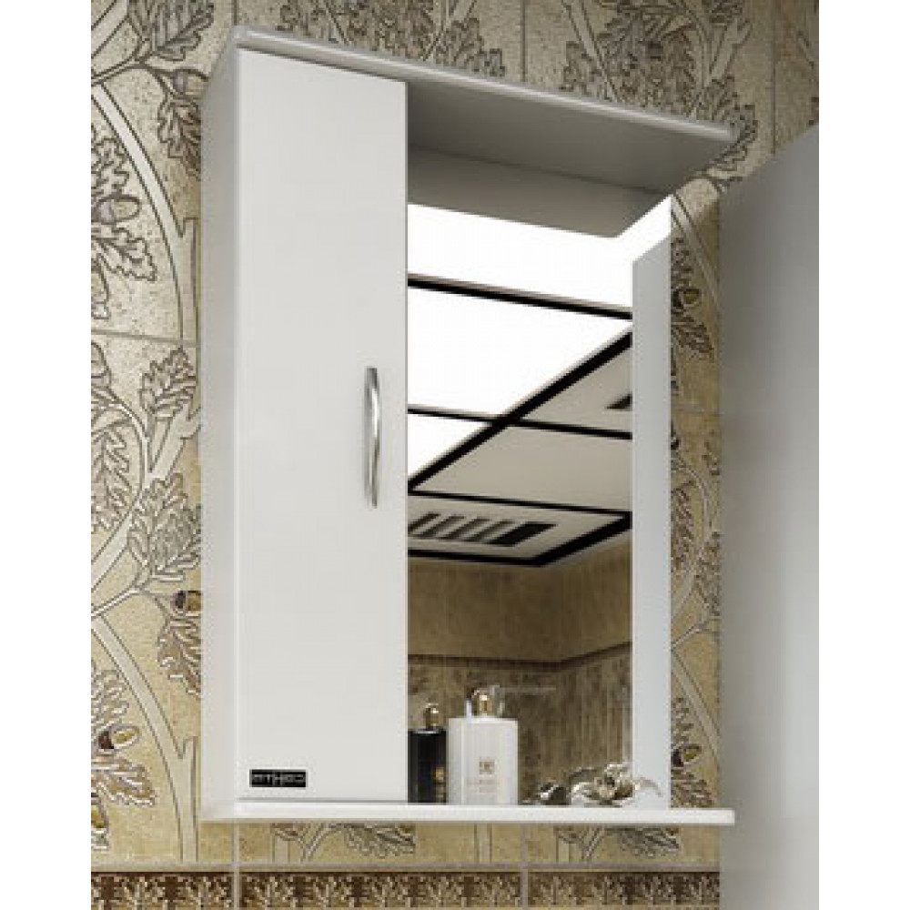 Описание: влагостойкая зеркальная распашная дверца с универсальной (лево/право) ориентацией, открытая полка.