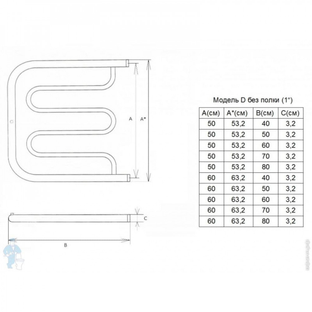 | Форма полотенцесушителя | U-образный |