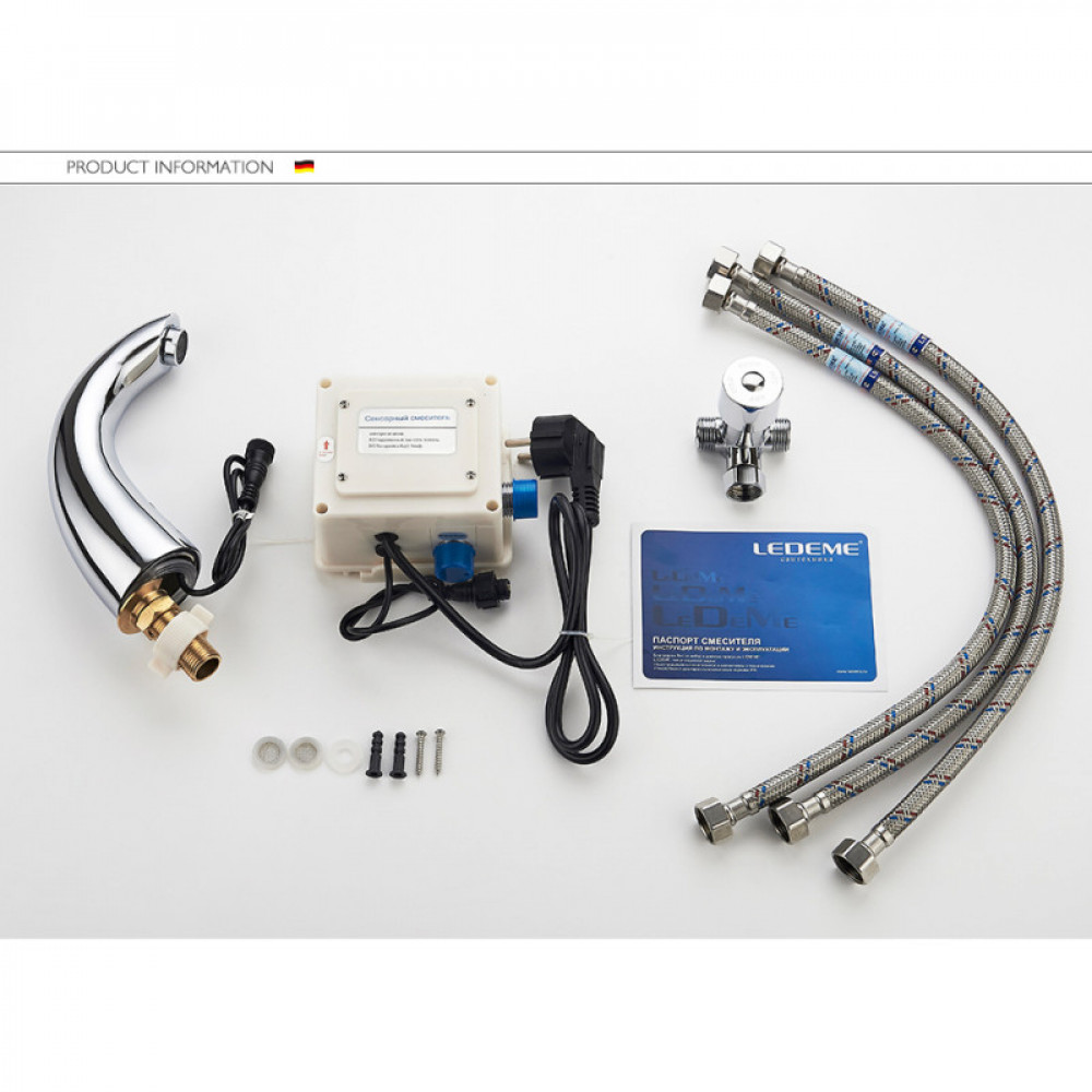 Сенсорный смеситель Ledeme L1055-14, прибор оборудован прогрессивным инфракрасным датчиком, подает воду когда под краном будут находиться руки. После монтажа прибора следует настроить определенную температуру и расстояние чтобы датчик подачи воды сработал. Наличие аэратора в приборе обеспечивает равномерный поток воды , а также ее относительное смягчение. Сетка отфильтровывает разнообразные примеси. Монтируется на шпильке. На нижнюю часть прибора устанавливается резинка, дабы смеситель не царапал и не елозил по столешнице, далее в прибор вкручиваются шпильки. Эту конструкцию ставим в отверстие, насаживаем на крепление и затягиваем гайками, чтобы зафиксировать. Дизайн выполнен в стиле хайтек, который сегодня обретает все больше и больше поклонников. Посмотреть примеры моделей этого типа вы сможете на страницах нашего сайта. Основной материал прибора - латунь, проверенный временем красивый материал высочайшего качества, который обеспечивает идеальное нанесение хромированного покрытия. Представленный вид приборов имеет надежный стационарный излив, который не меняет свое положение в пространстве. Именно благодаря своей простоте и надежности модель очень популярна в наше время. Монтаж данной модели производится на одно отверстие для смесителя. В комплекте идет, инструкция по установке, гарантийный талон.
