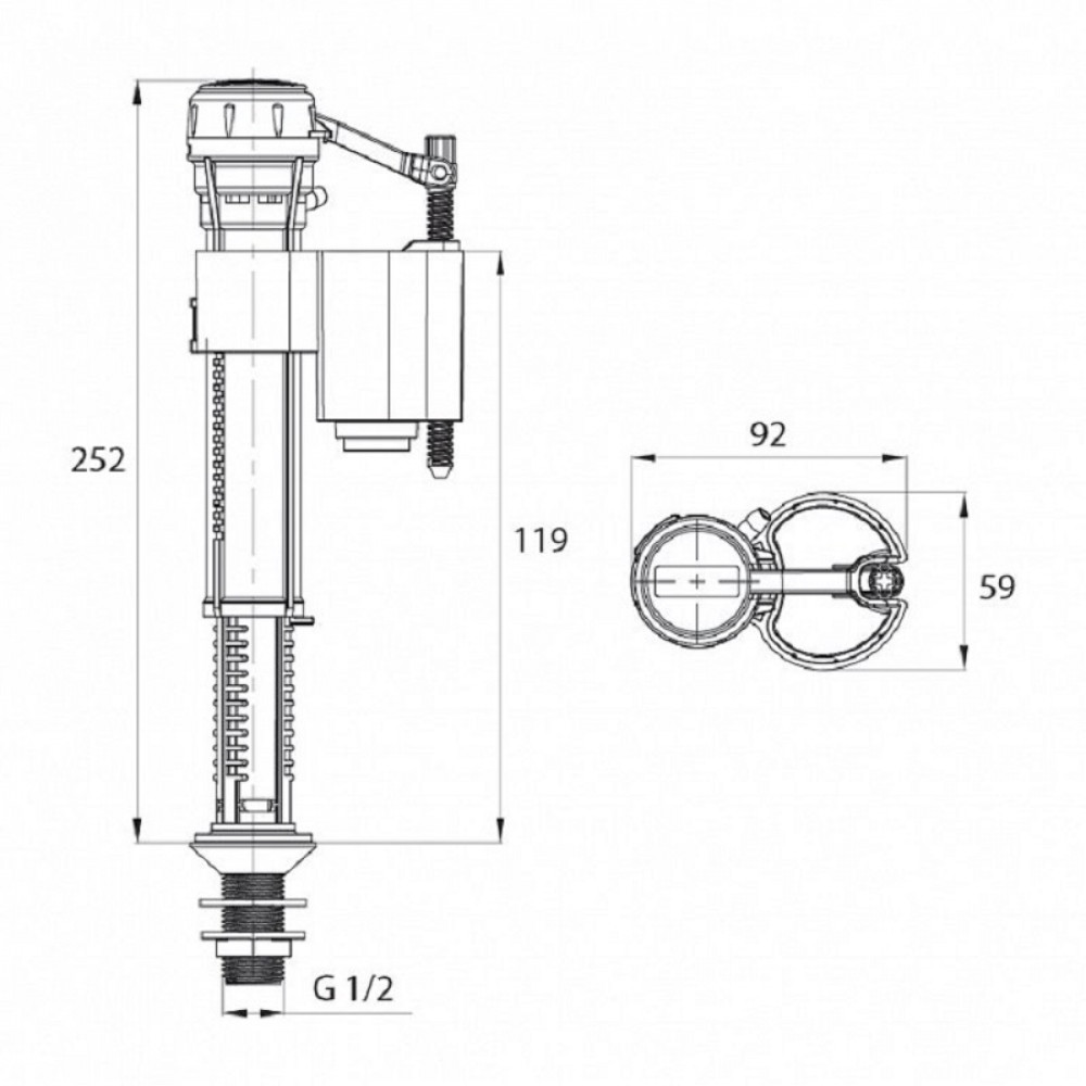 Впускной клапан (нижний подвод воды) Комплектация: Крепеж, паспорт изделия.