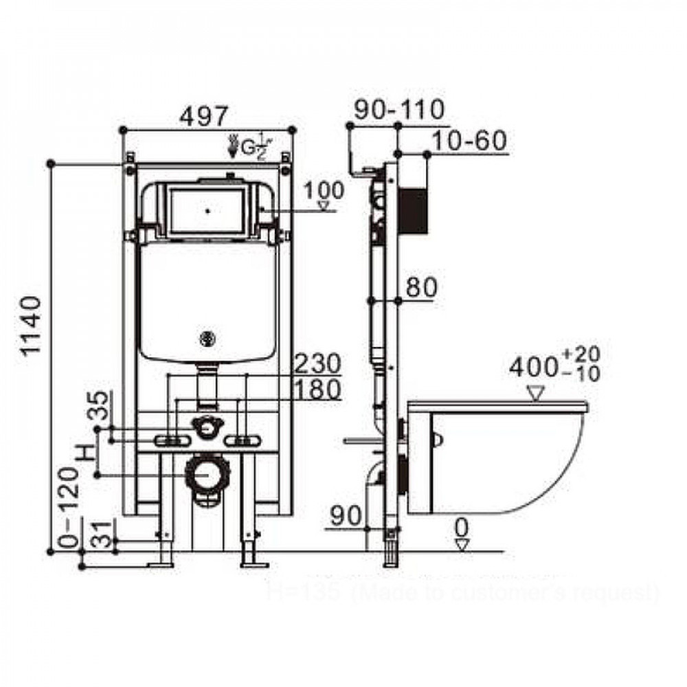 - Межосевое расстояние под крепеж унитаза: 18 и 23 см.