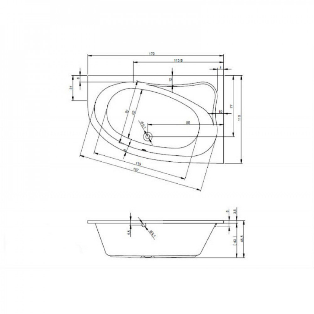 Ванна акриловая Riho Lyra 170 BA 64 L (Лира) 170*110 см